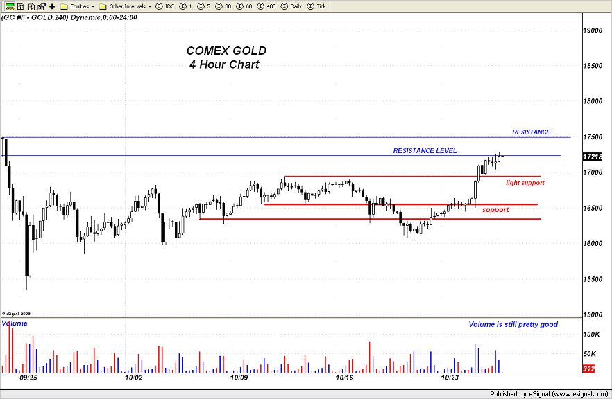 Gold has run exactly to the projected resistance level on the charts, backed off a bit, and then encountered additional buying which is keeping it well supported at the current hour.